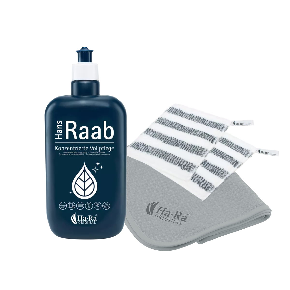 Na gebruik met 2-3 druppels Hans Raab verzorgingsmiddel met helder water uitwassen. Als het doekje erg vuil is, met Ha-Ra Saponella op 40°C in de wasmachine wassen. Gebruik nooit wasverzachter of wasmiddelen die wasverzachter bevatten. Niet in de wasdroger doen, maar aan de lucht laten drogen. Gebruik geen agressieve reinigingsmiddelen.